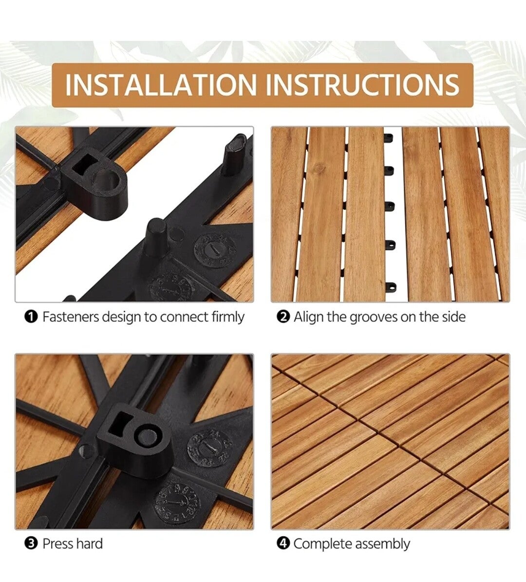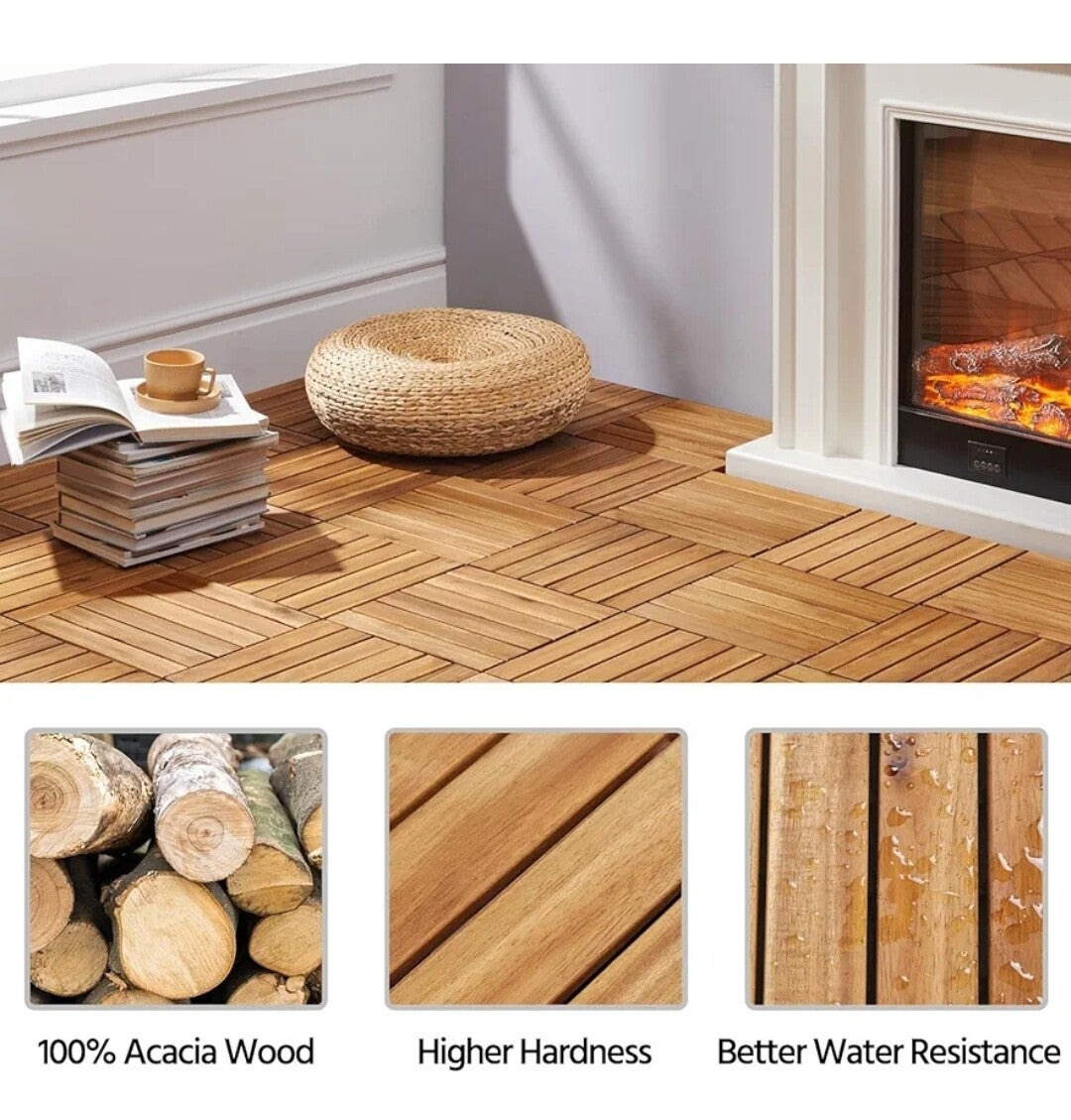 • Langlebiges und natürliches Material: Unsere 27 Holzfliesen bestehen aus natürlichem Akazienholz und einer hochwertigen PVC-Kunststoffbasis. Sie sind so konstruiert, dass sie Rissen auch unter feuchten Bedingungen standhalten und eine hervorragende Langzeitbeständigkeit gewährleisten.