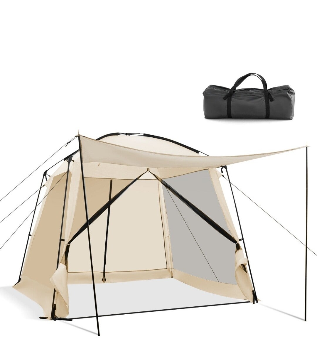 Zelt für 6-8 Personen Campingzelt mit Vorzelt wasserdicht 300 x 300 x 250 cm Beige