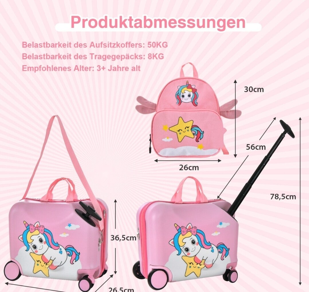 2tlg Kindeoffer + Rucksack 47 cm Langer Aufsitzkoffer