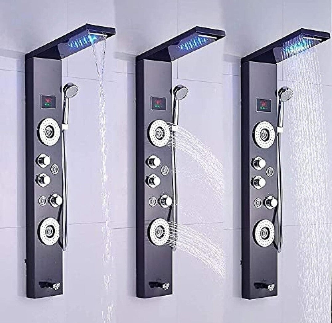 Duschsäule, Massagedüsen, Mischbatterie, großer Bildschirm, blaues Licht, Regen- und Wasserfall-Duschkopf aus Edelstahl Duschsystem-Set (Color : Black 8006